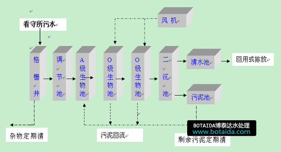 看守所大部分位于遠離城市,其廢水的排放不能納人城市下水管道,不能隨城市污水 一起處理。但是一般而言,看守所與地表水域非常接近,如污水不經過處理,勢必會污染當地的環境。通常,看守所與一般的生活小區有許多不同之處。看守所內缺乏具有專業污水處理知識的管理人員和維護人員,并且除部分處于市里的看守所污水能進入市政管網外,多數看守所的生活污水未經處理排入附近的河、溝、渠,以及周邊的農田,對周邊的水環境造成嚴重的影響。因此,建立看守所的污水處理自動控制系統具有非常重要的現實意義。