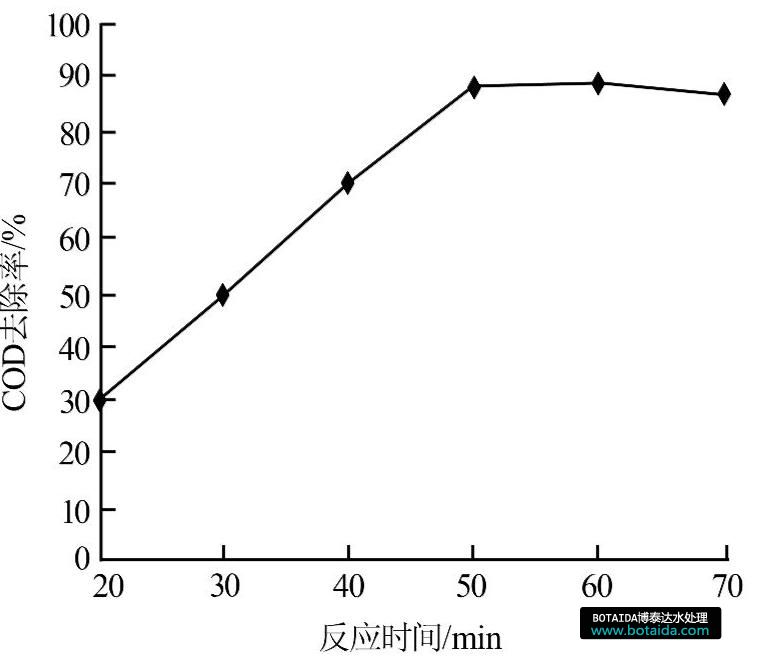 圖5 反應時間對廢水COD去除率的影響