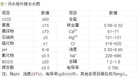 電滲析脫鹽裝置進水為污水場外排水,在污水場正常運轉時,其外排水水質如表1。