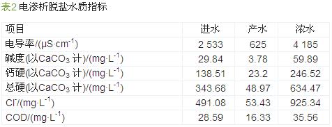 從表3可以看出,電滲析產水水質滿足工業用水水質要求,可回用于循環水補水系統中。