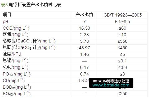 將電滲析裝置產水與《城市污水再生利用/工業用水水質》(GB/T 19923—2005)中要求的標準進行對比,結果見表3。
