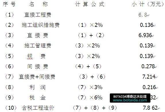 工程設計費=(土建工程費+設備設施及器材購置及安裝費)×2%=(7.862萬+9.25萬)×2%=0.342萬。