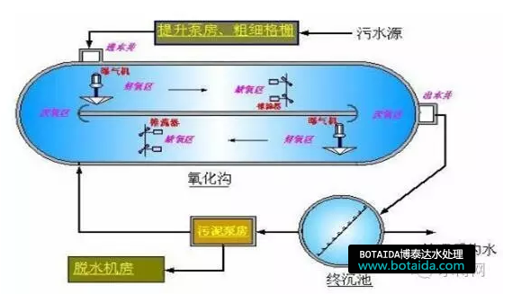 特點是:混合液在溝內不斷地循環流動,形成厭氧、缺氧和好氧段。