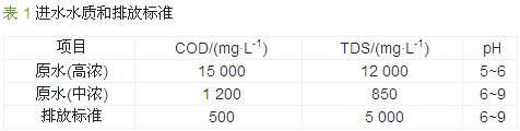 該工程設計處理能力為320 t/d,其中生產廢水約為80 t/d,車間沖洗水、生活污水 約為240 t/d,其水質如表 1所示。