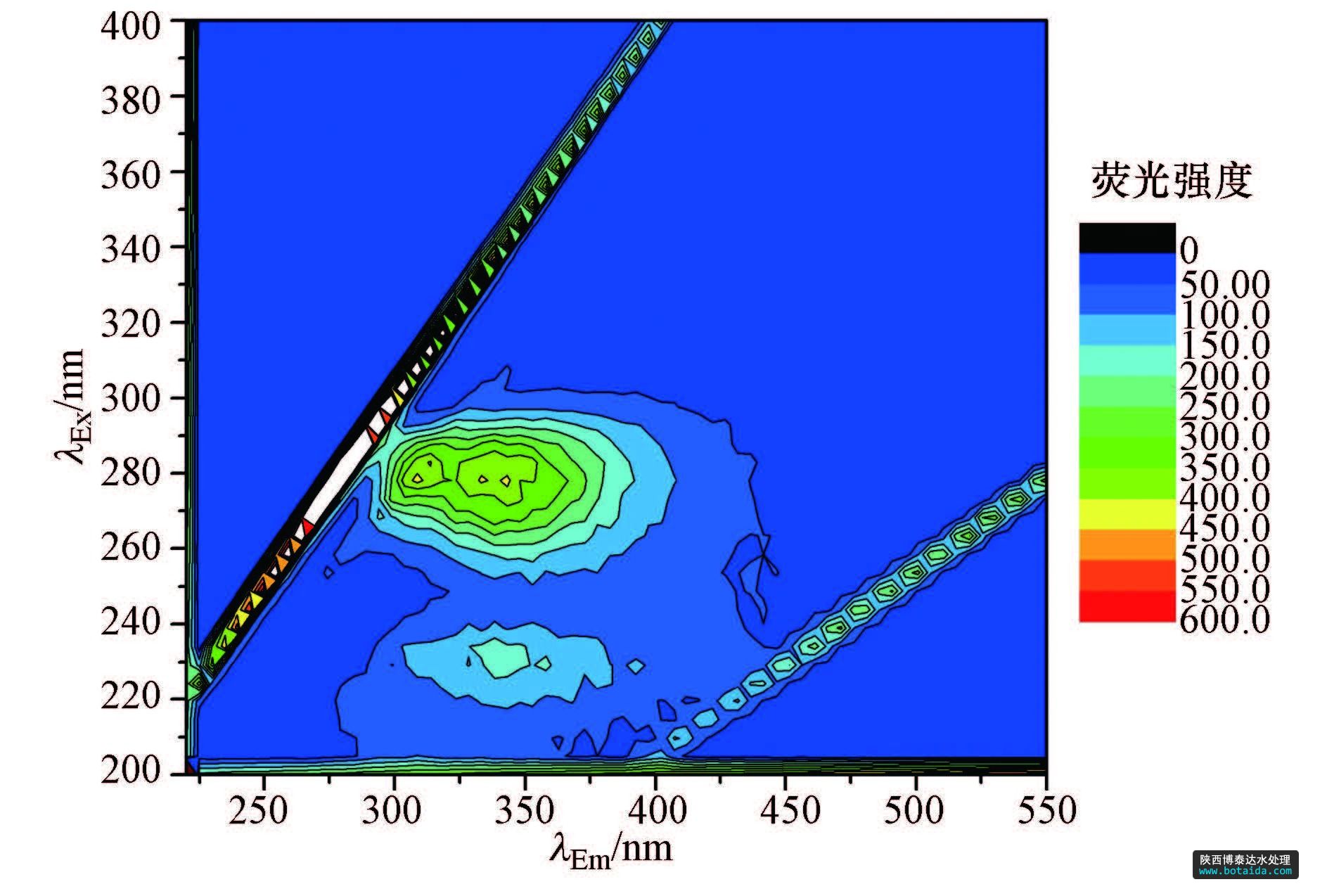 圖4 優化工藝條件下污泥上清液的三維熒光光譜圖