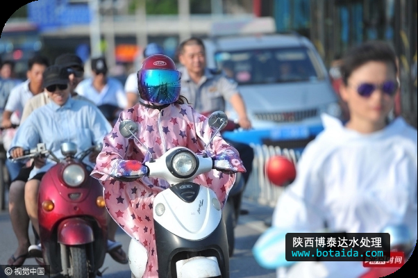 2016年6月2日,廣西南寧市,連日高溫高濕的酷熱天氣,為防止暴曬,許多騎車出行的市民“全副武裝”都把自己嚴嚴實實的包裹起來,裹成“蒙面超人”。
