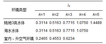 表 3 4類水體及室內外空氣環境的引力普適指數的分級標準值Ik
