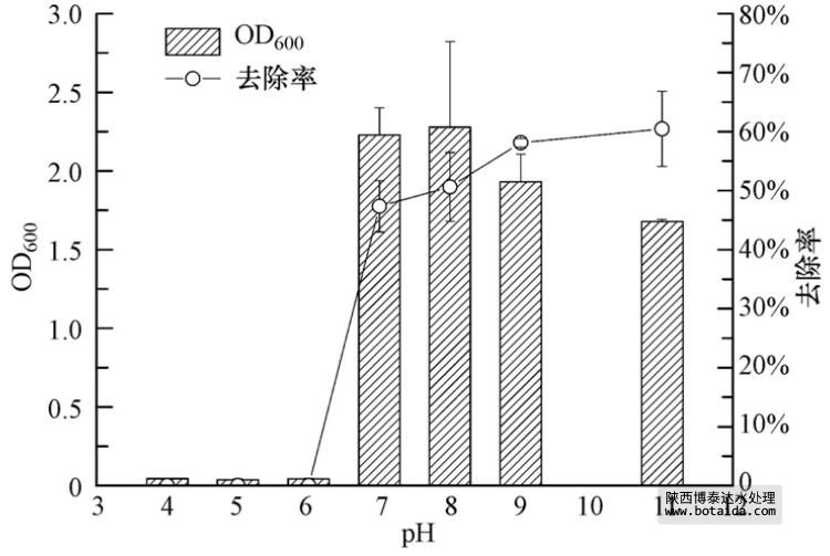 3.3.4 不同pH對菌株ED-12的生長及除磷能力的影響