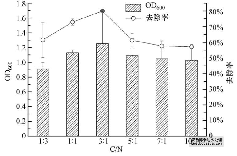 3.3.3 不同C/N對菌株ED-12的生長及除磷能力的影響
