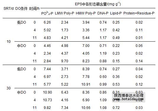 表3 不同SRT和DO條件下EPS中各形態磷含量
