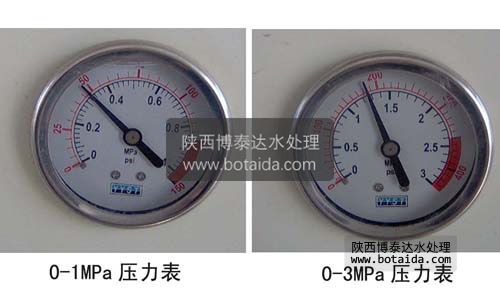 4 、壓力表:測量系統進水壓力、段間壓力、濃水壓力、產水壓力。