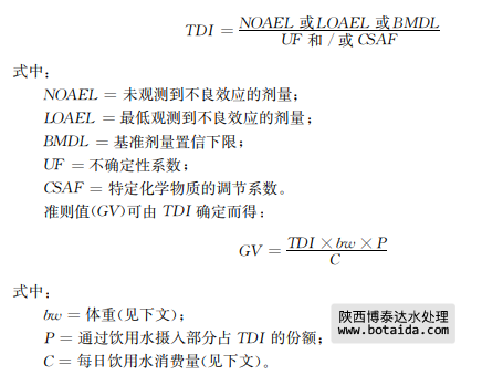 多年來,聯合國糧農組織(FAO)/世界衛生組織(WHO)的食品添加劑聯合專家委員會 (JECFA)和聯合國糧農組織/世界衛生組織農藥殘留聯席會議(JMPR)已經就確定ADIs制 訂了一些原則(FAO/WHO,2009),這些原則已被采納,在適當的情況下,可以用來制定飲 用水水質的準則值。