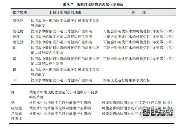 表8.7列舉了尚未制訂準則值的天然化學物質,并在表中說明了理由,其資料概覽見第 12章。