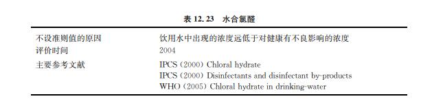水合氯醛也是生產殺蟲劑、除草劑和安眠藥的中間體。水合氯醛曾廣泛用作鎮靜劑或 催眠藥物,口服劑量高達750~1000mg/d。盡管臨床使用的劑量大大高于從飲用水中攝入 的量,但臨床暴露時間較短。 盡管水合氯醛作為成人和兒童鎮靜劑和催眠藥物使用達幾十年(特別是用于牙科操 作),但沒有被替代的趨勢,且沒有關于接觸暴露水合氯醛與癌癥之間關系的流行病研究和 致癌性研究(針對人類)。由于對人類致癌的證據不足,根據有限的動物試驗資料,IARC將 水合氯醛列為對人類無明顯致癌作用的化合物(第3組)。關于水合氯醛的遺傳毒性的研究 也沒有確定的結論。 基于健康的濃度水平為0.1mg/L(取整值)可以在犜犇犐為0.0045mg/kgbw/d的基 礎上通過以下試驗計算出來:假設飲水所占的犜犇犐配額為80% (因為大多數暴露水合氯醛 是通過飲水),成人體重60kg,每日攝入2L水,通過2年小鼠飲用水試驗,觀察到小鼠肝臟 病理學改變增加。通常,水合氯醛在飲用水中的濃度低于能觀察到毒性效應的濃度,因此沒 有必要設置準則值。 飲用水中水合氯醛濃度的控制可以通過改變消毒措施(即強化混凝和軟化除去有機前 體物,折點加氯和使用氯胺代替氯保證輸水余氯)及使用GAC處理。