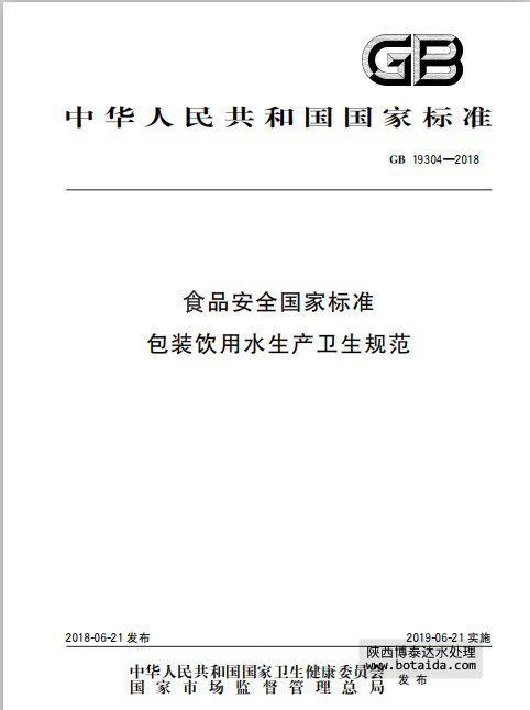 新標準GB19304—2018《食品安全國家標準包裝飲用水生產衛生規范》已正式實施!與GB19304—2003和GB16330—1996標準相比,主要有以下變化:☆標準名稱修改為“食品安全國家標準 包裝飲用水生產衛生規范”;