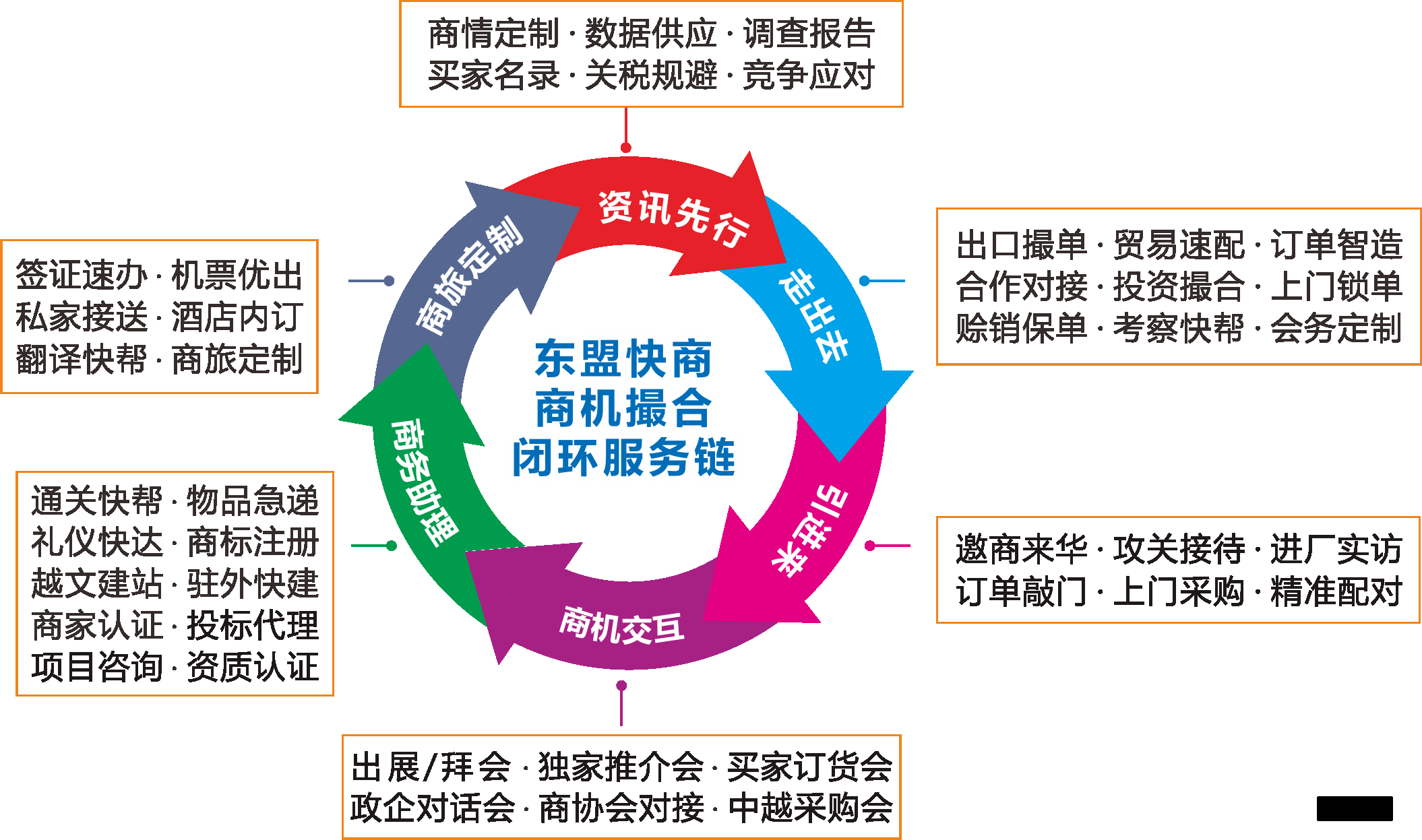 可量身定制買家撮合對接服務,獨享個性化行程:上門拜訪客戶、實地考察、商協會接洽等,費用另
