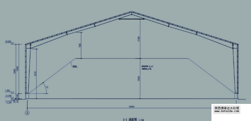 輔料堆棚項目長約 40米,寬 24 米,高 9.6 米的料倉。沿中心點兩側做兩條約 40 米長的噴霧降塵點,共計約 80 米。