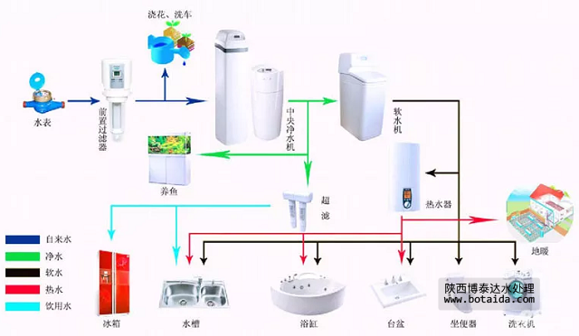 假如裝修預算足夠的話,博泰達家用水處理設備目前豪華的配置為:前置過濾器+中央凈水機+軟水機+(凈水機或純水機)。至于這幾種設備,是全部選擇還是選擇其中一個或幾個呢?這取決于看你家的水質情況、以及每個家庭的各自的需求與預算了。值得提醒的是你家的水質情況,而非當地的水質情況。因為水從水廠出發長途跋涉到你家,往往需要經過了相當漫長的“路程”。