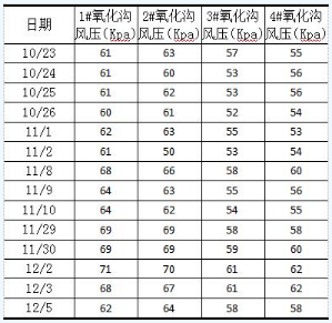 本項目于2017年9月底正式完成改造工程。其中1#、2#氧化溝采用了停水清池,底部安裝固定的方式,安裝了新的微孔曝氣器,3#、4#氧化溝采用了帶水作業的方式,安裝了新的旋流曝氣器。具體運行數據見表2、 表3。