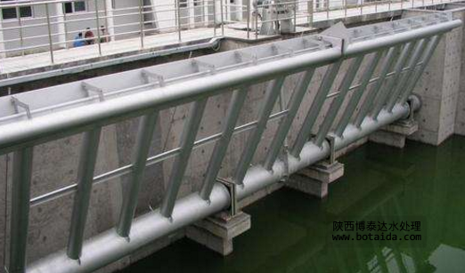 潷水器又稱潷析器,是SBR工藝中最關鍵的機械設備之一。可以分為虹吸式潷水器、旋轉潷水器、自浮式潷水器、機械式潷水器,目前在國內應用廣泛的多為旋轉式(屬機械式潷水器的一種)。潷水器是SBR 工藝采用的定期排除澄清水的設備,它具有能從靜止的池表面將澄清水潷出,而不攪動沉淀,確保出水水質的作用。由于SBR法工藝采用間歇反應,進水、反應、沉淀、排水在同一池內完成,無須二次沉淀池和污泥回流設備,因此具有占地少、投資小、效率高、出水水質好等優點;同時將多個 SBR 池連接起來,還可以具有傳統污泥法工藝的連續性(連續進水),又具有典型 SBR 工藝的間歇性,適用于水質、水量、變化大的需要,因此得到國內外的廣泛應用。