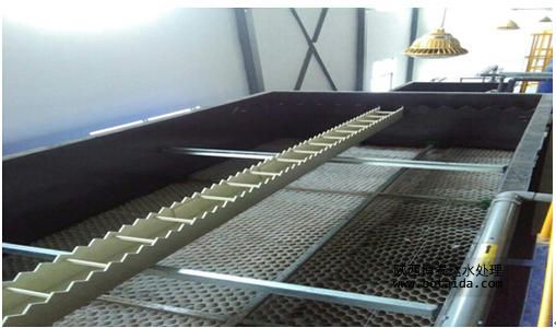 水解酸化池內部可以不設曝氣裝置,控制停留時間再水解、酸化階段,不出現厭氧產氣階段,前兩個階段的COD去除率不是很高,因為他的目的只是將大分子的變成小分子有機物,一般去除率在20%左右,產氣階段的COD去除率一般在40%左右,但這是產生的硫化氫氣體要進行除臭處理,且達到產氣階段的停留時間要較前兩階段長,也就是要出現厭氧狀態。缺缺氧池內要設置曝氣裝置,控制溶解氧在0.3-0.8mg/l,利用兼氧微生物及生物膜來降解廢水中的有機物,接觸氧化池內的曝氣器要慎重選擇,既要保證供氧量,又要確保有利于生物膜的脫落、更新。一般不選用微孔曝氣器作為池底的曝氣器。
