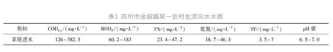采用鐵碳-砂濾組合進行強化除磷,相比化學法,操作簡單,維護量小,從而為鐵碳-砂濾的深度除磷工藝在農村生活污水中的應用,一級脫氮除磷強化提供解決思路。為分析鐵碳-砂濾除磷工藝實際工程中的除磷效果,將該工藝應用于蘇州市金庭鎮某一農村生活污水處理項目。該項目污水處理系統采用固定床生物膜工藝,為防止鐵碳板結鈍化,裝置通過特殊結構設計,通過機械方法使鐵碳運動,互相摩擦去除氧化膜,避免長時間電解過程中陽極鈍化及鐵碳板結問題。項目區生活污水水質情況如表1所示。