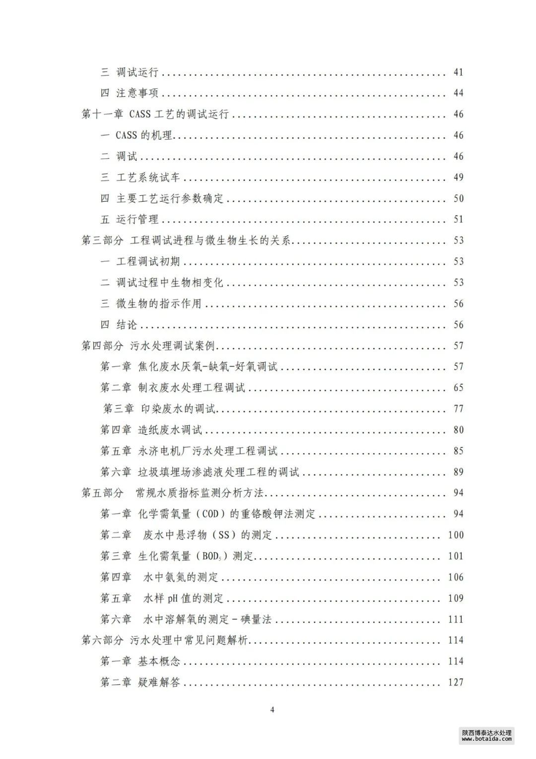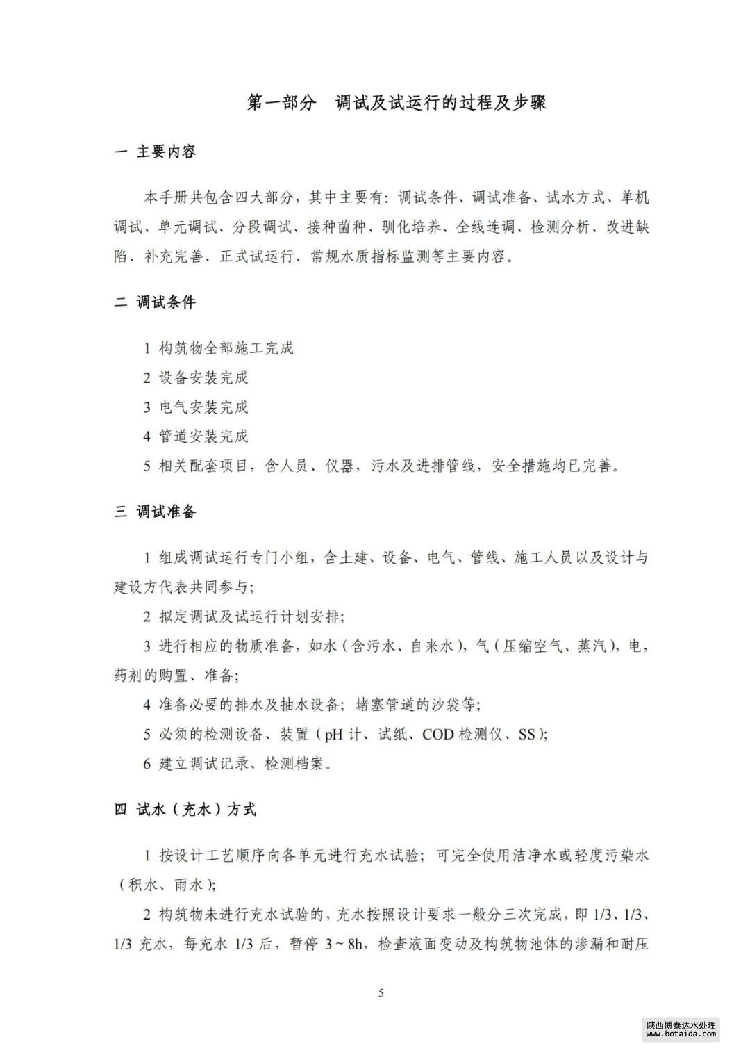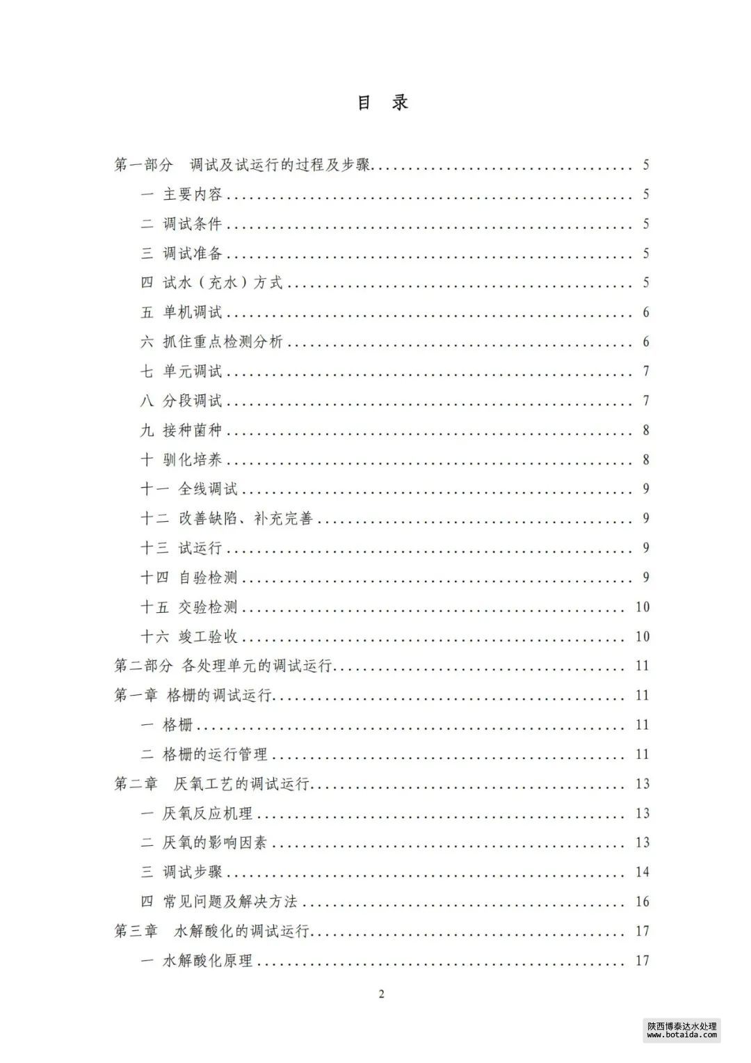 本手冊共包含四大部分,其中主要有:調試條件、調試準備、試水方式、單機調試、單元調試、分段調試、接種菌種、馴化培養、全線連調、檢