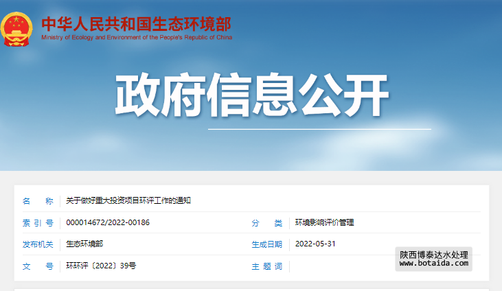 關于做好重大投資項目環評工作的通知