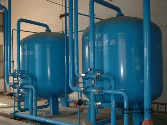 機械過濾器是根據系統總進水量來選擇過濾器的大小以及組合方式的(一臺機械過濾器不夠可選擇多個并聯使用以及備用的數量),機械過濾器內的填料是由許多不同粒徑的精制石英砂嚴格按從大到小的次序配置而成,因而形成良好的石英砂級配。