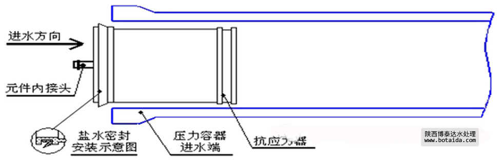 2.5將元件間的連接管插入中心管內,安裝前,在接頭“O”形圈上涂抹少量甘油潤滑劑,如果沒有,也可直接用合格預處理水潤濕。